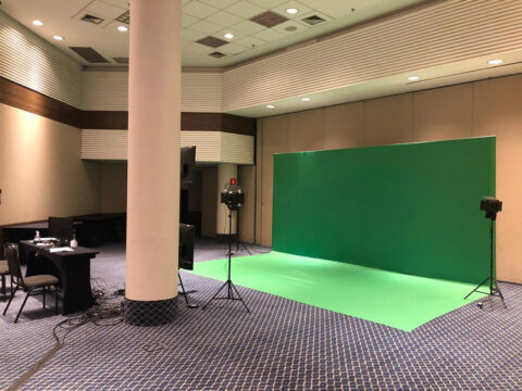 As salas são equipadas com background para chroma key, TV’s de 47”, microfones, câmeras digitais, notebooks e internet de alta velocidade e sistema para live streaming.